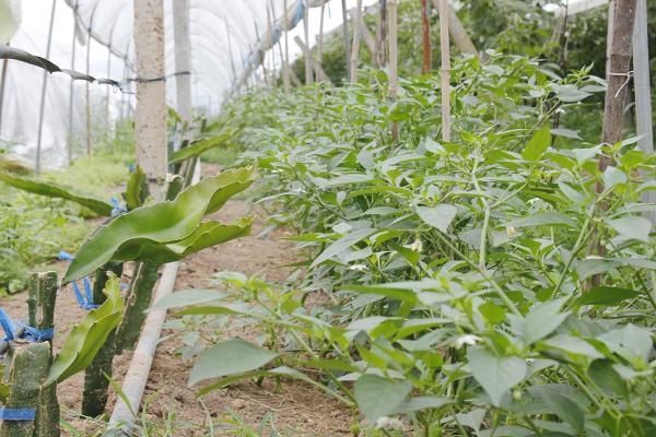 教学实习基地的火龙果和辣椒混种